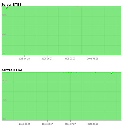 Štai serverių veikimo grafikas (Uptime report) paskutinius 6 mėnesius: